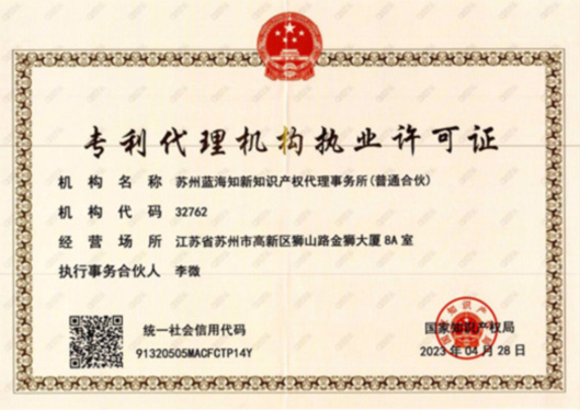 • 蘇州藍海知識產權代理有限公司  備案號:蘇ICP備19025706號-1